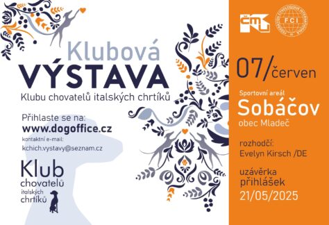 Festival Italského chrtíka 20. – 21. 5.2023 Jarní klubová výstava se zadáváním titulů Klubový vítěz se koná v rámci festivalu v sobotu 20.5.2023. K posuzování…